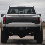 Visually, the new monster ute has been fitted with Hennessey`s in-house built VelociRaptor front and rear bumpers, adding as well LED front lights for better viewing during foggy nights and Stage 2 off-road suspension with six-inch lift to cope with heavy lifting. The wheels measure 20 inches and come wrapped in huge 37-inch BF Goodrich KM03 off-road tires.