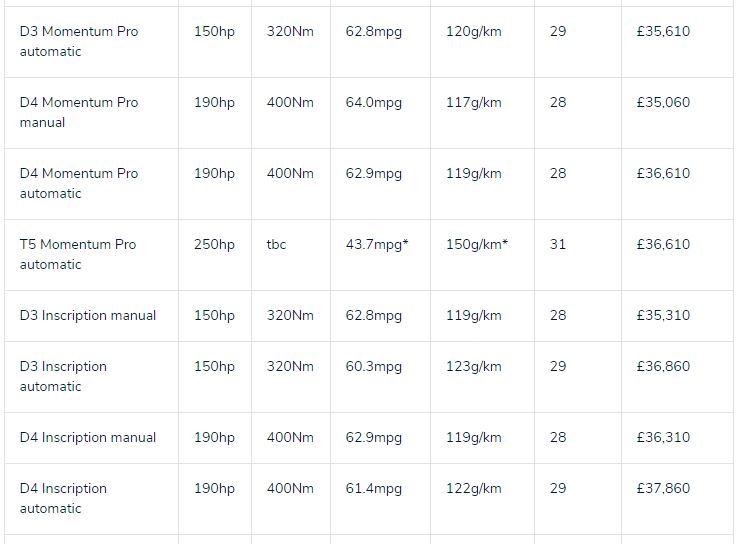 The cheapest variant is the D3 Momentum with a £31,180 price tag and power standing at 150 HP and 320 Nm of torque. However, you can also choose one of the mid-entry levels like the T5 Momentum, which costs no less than £34,360, and is equipped with 250 HP engine.