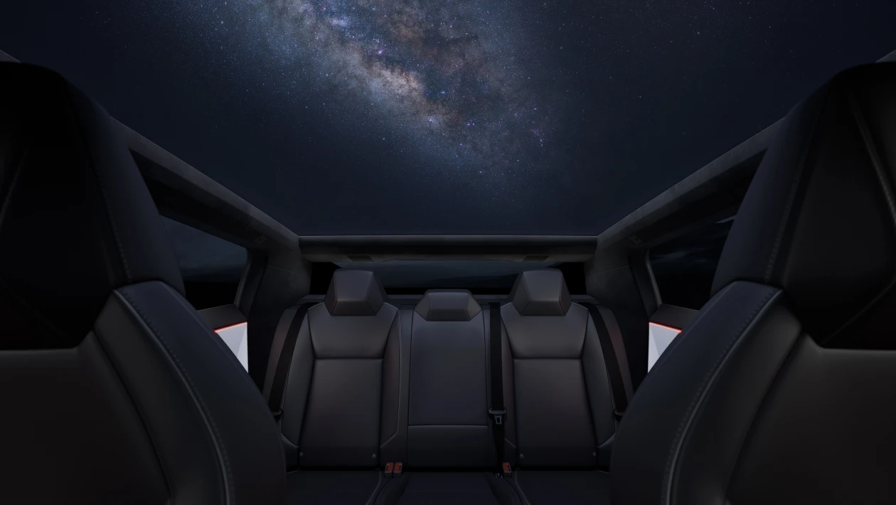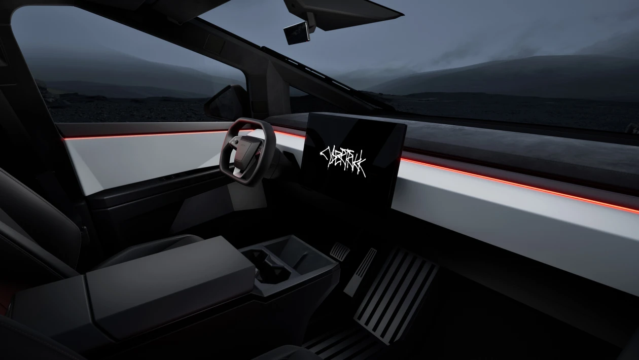 Staying true to its concept, the Cybertruck`s exterior embodies Tesla’s design philosophy. Its angular stainless steel body is unlike anything ever seen in the world. The bodywork is bulletproof and lacks curves while also featuring armored glass – all contributing to the truck’s futuristic and sturdy appearance. While opinions on its aesthetics may vary, there is no denying that the Cybertruck design is truly unique and disruptive.